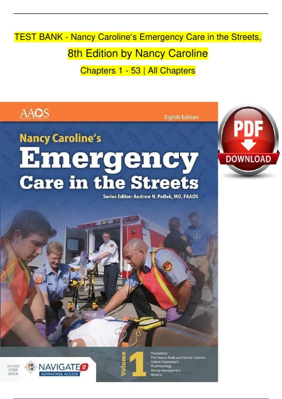 Test Bank for Nancy Caroline’s Emergency Care in the Streets 8th Edition – 100% Accurate Answers | Exam Prep | Latest Update 2026 – Nancy L. Caroline & American Academy of Orthopaedic Surgeons