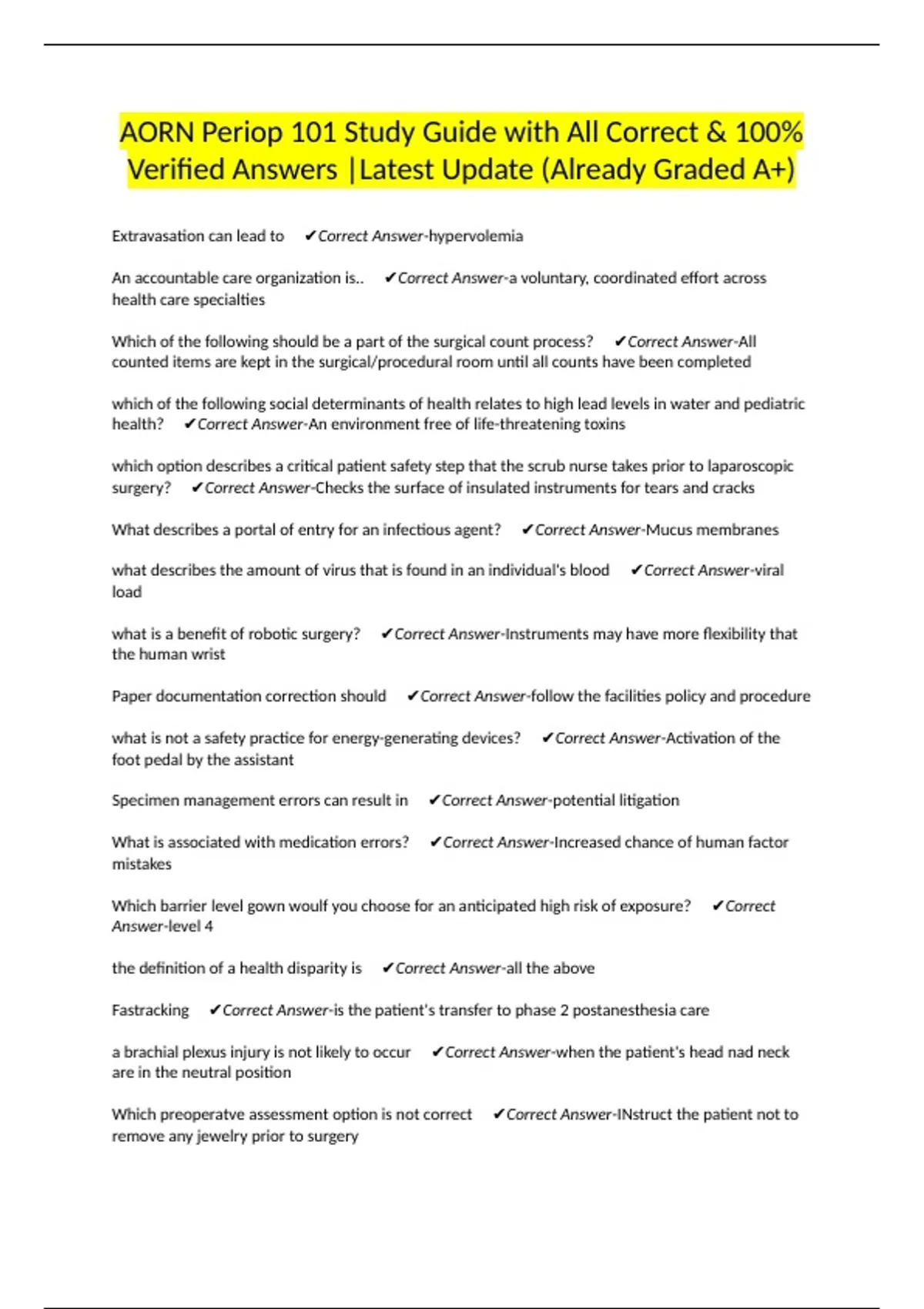The preoperative to intraoperative hand over documentation would not include ✔Correct Answer-
