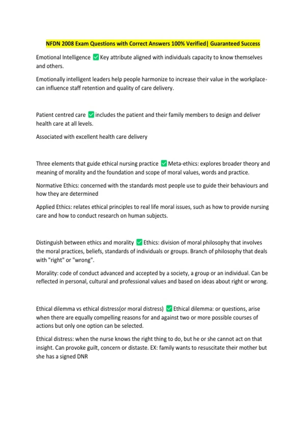 NFDN 2008 Exam Questions with Correct Answers 100% Verified| Guaranteed Success