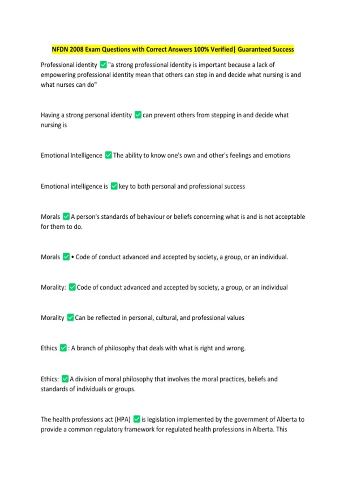 NFDN 2008 Exam Questions with Correct Answers 100% Verified| Guaranteed Success