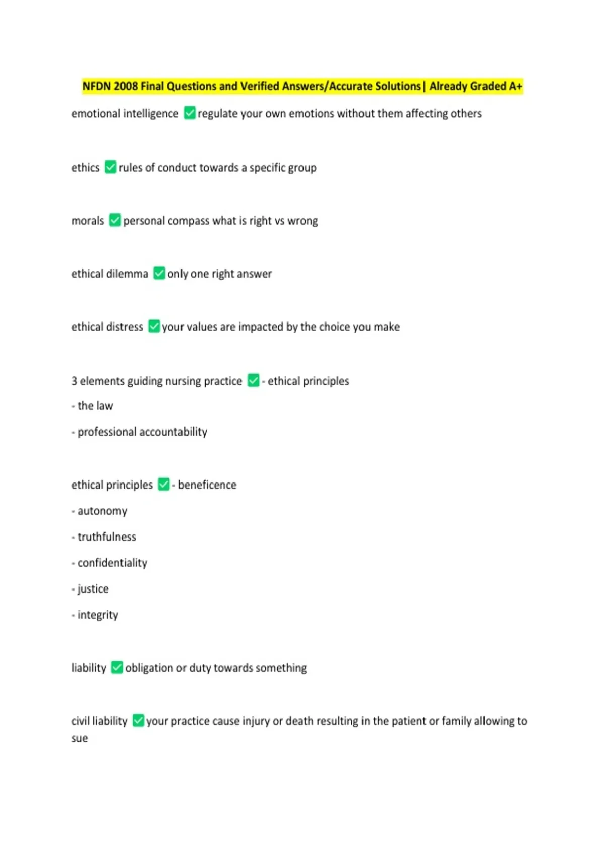 NFDN 2008 Final Questions and Verified Answers/Accurate Solutions| Already Graded A+