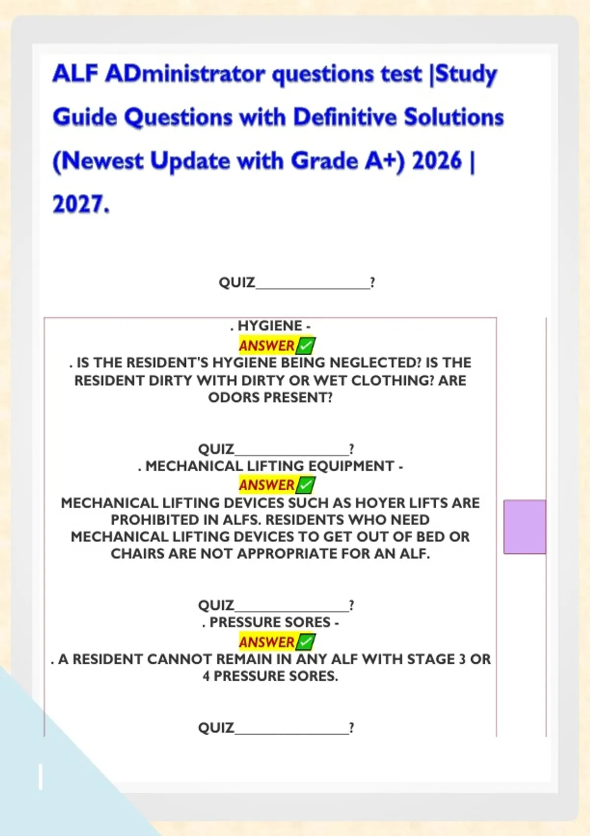 PROHIBITED IN ALFS. RESIDENTS WHO NEED