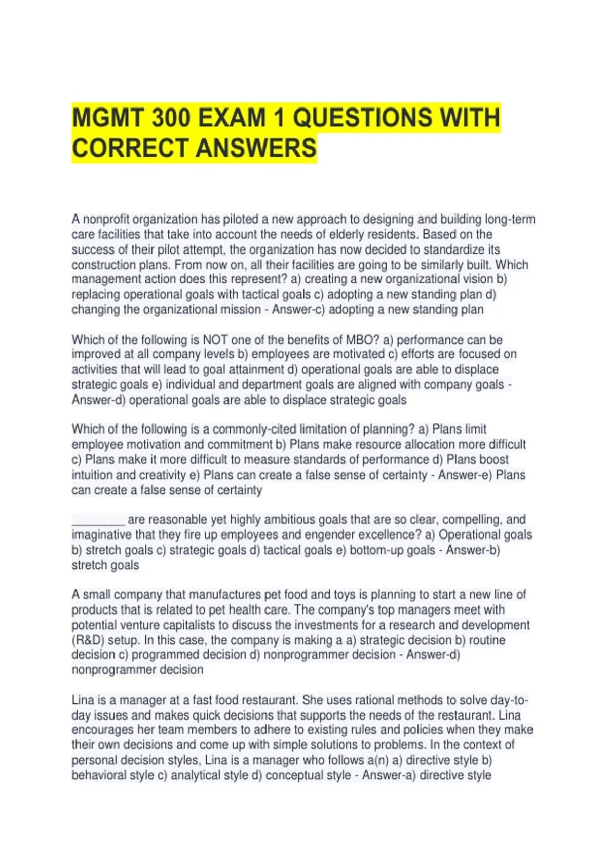 MGMT 300 EXAM 1 QUESTIONS WITH CORRECT ANSWERS