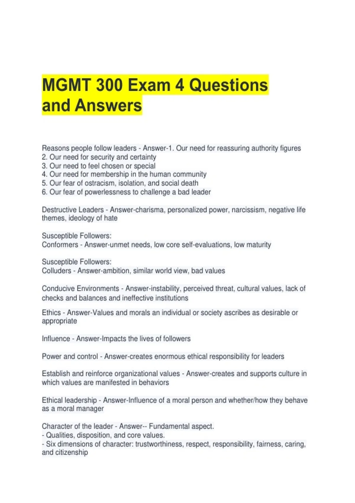 MGMT 300 Exam 4 Questions and Answers
