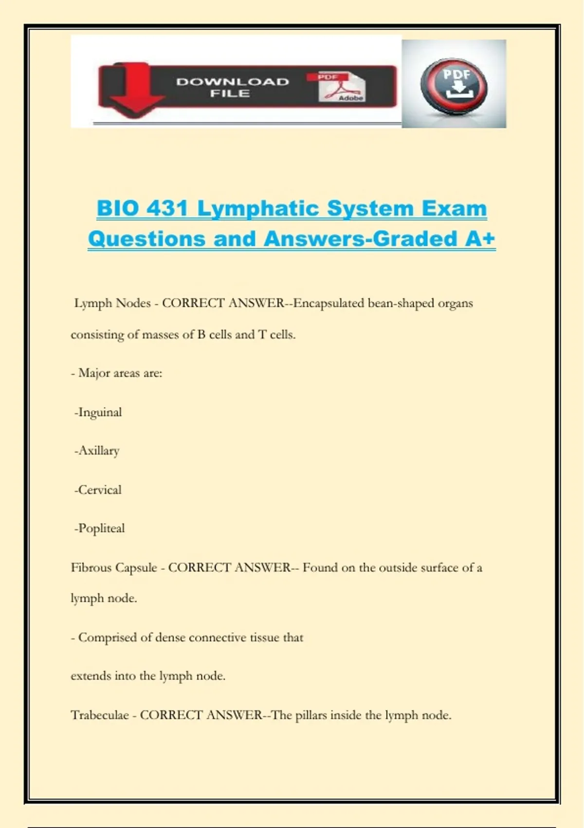 BIO 431 Lymphatic System Exam Questions and Answers-Graded A+