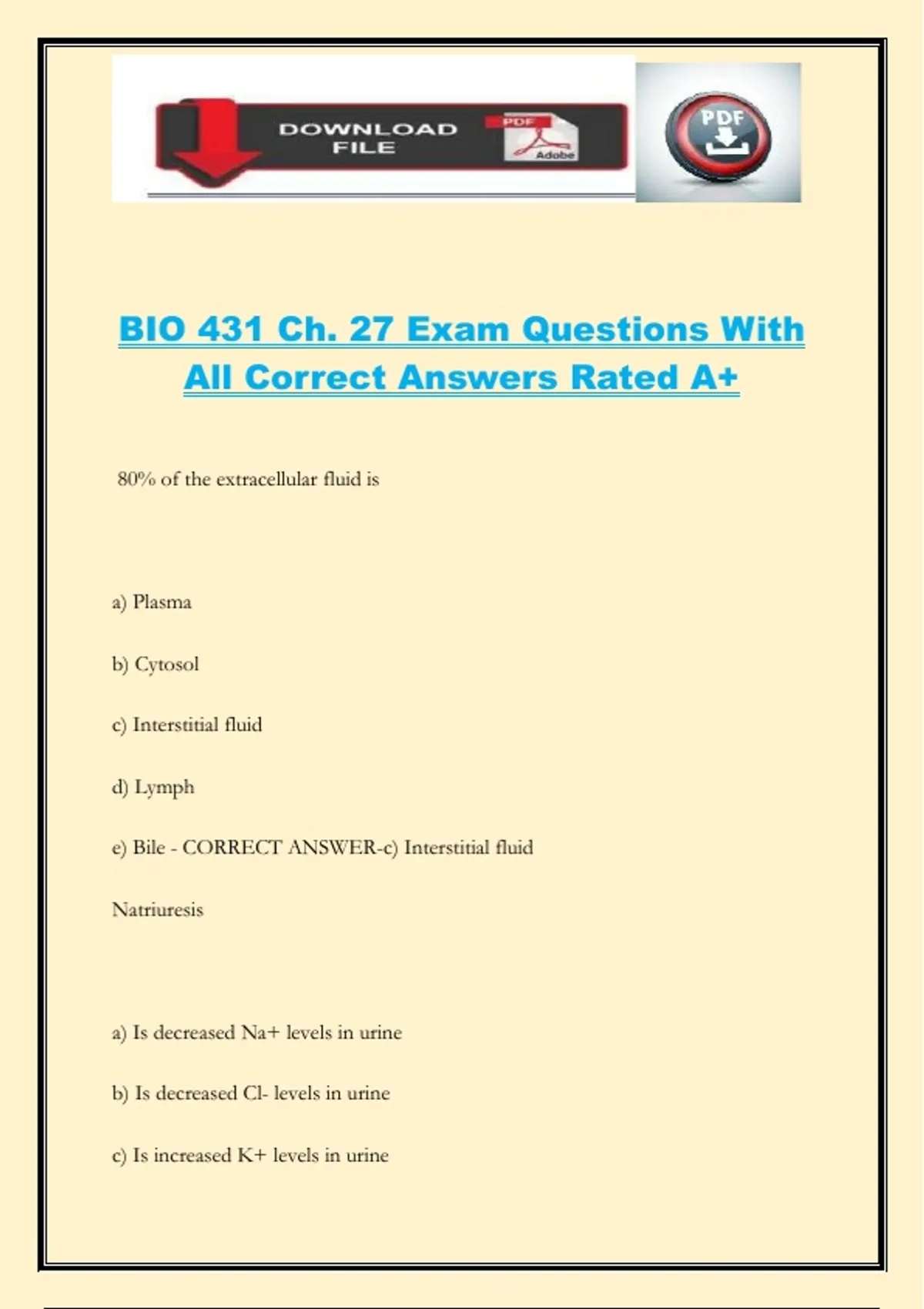 BIO 431 Ch. 27 Exam Questions With All Correct Answers Rated A+