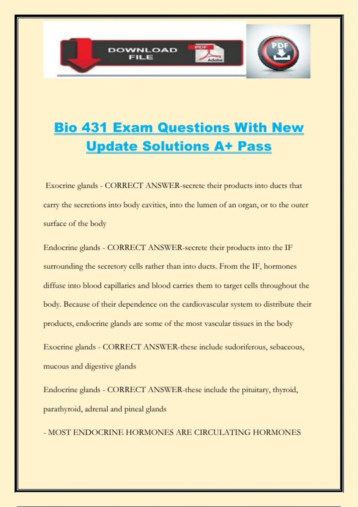 Bio 431 Exam Questions With New Update Solutions A+ Pass