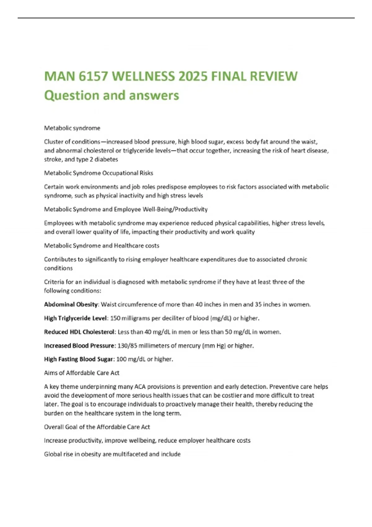MAN 6157 WELLNESS 2025 FINAL REVIEW Question and answers