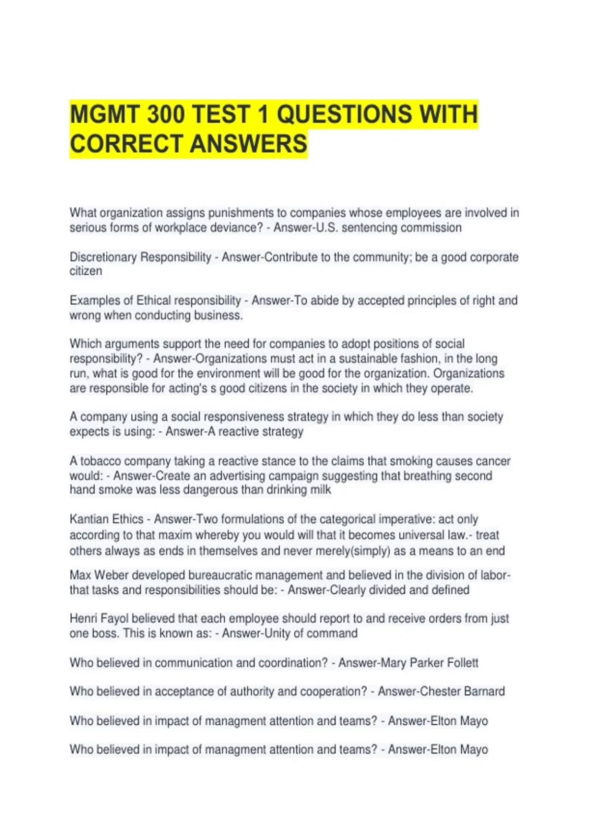 CORRECT ANSWERS