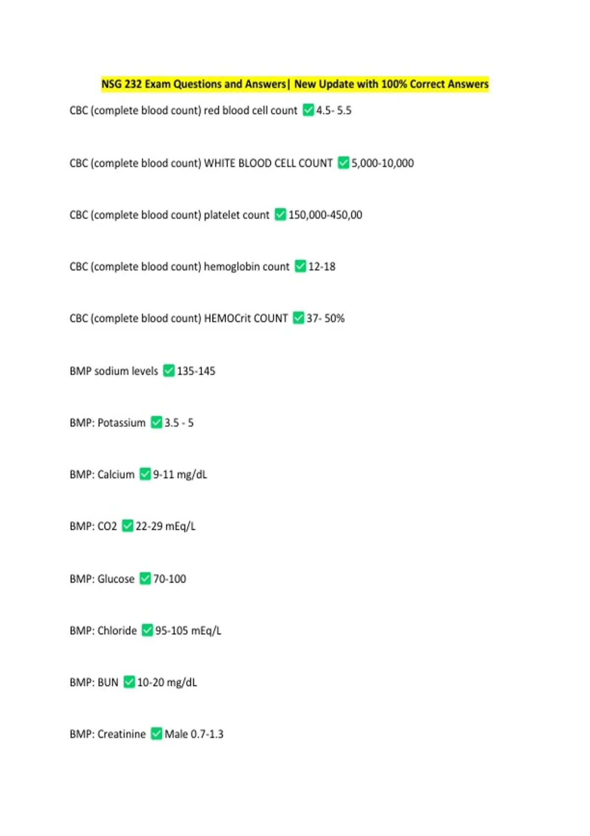 NSG 232 Exam Questions and Answers| New Update with 100% Correct Answers