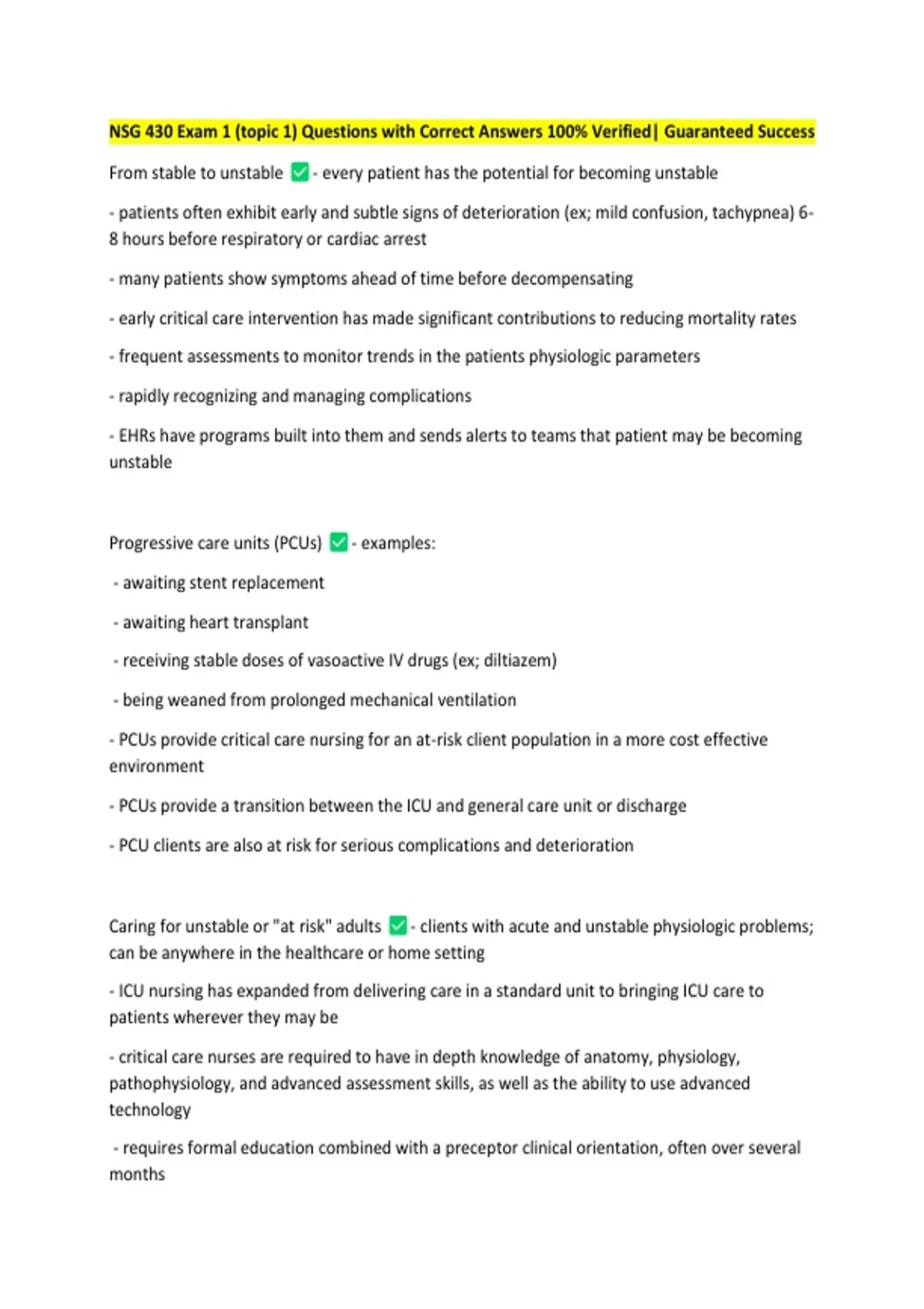 NSG 430 Exam 1 (topic 1) Questions with Correct Answers 100% Verified| Guaranteed Success