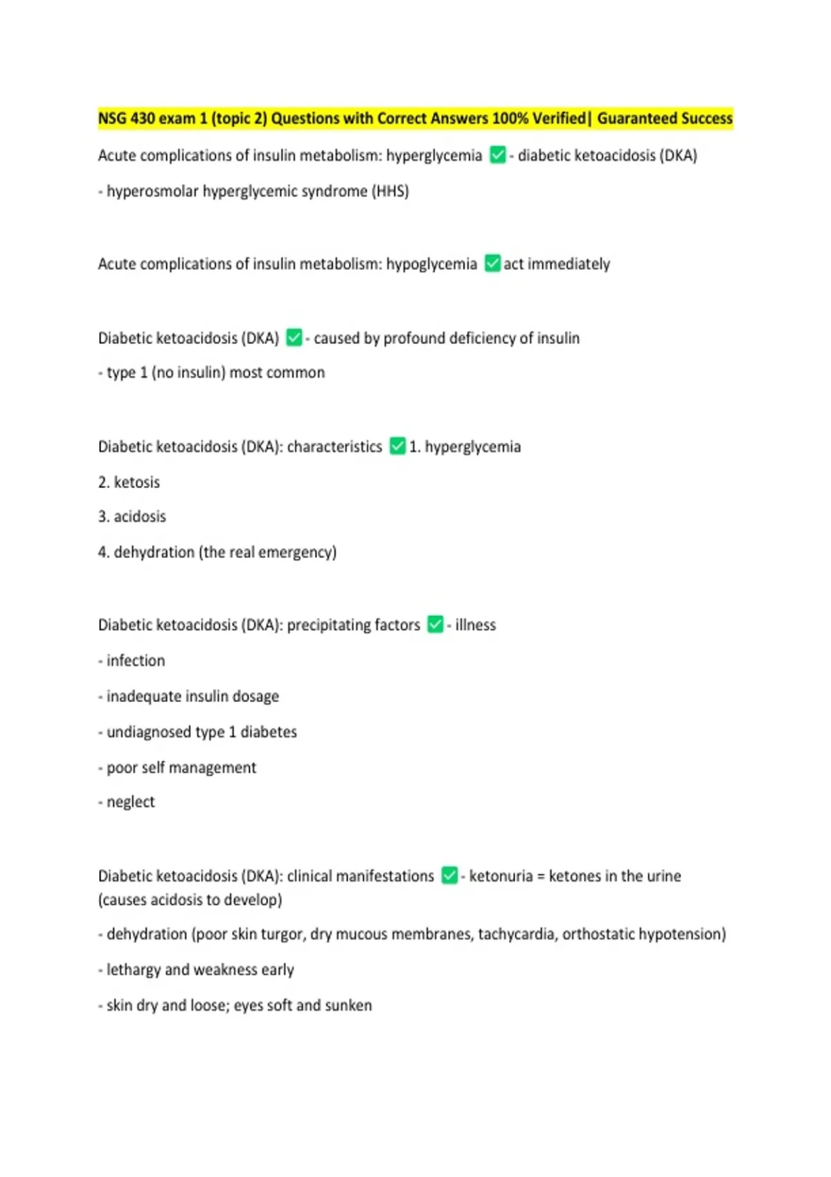 NSG 430 exam 1 (topic 2) Questions with Correct Answers 100% Verified| Guaranteed Success