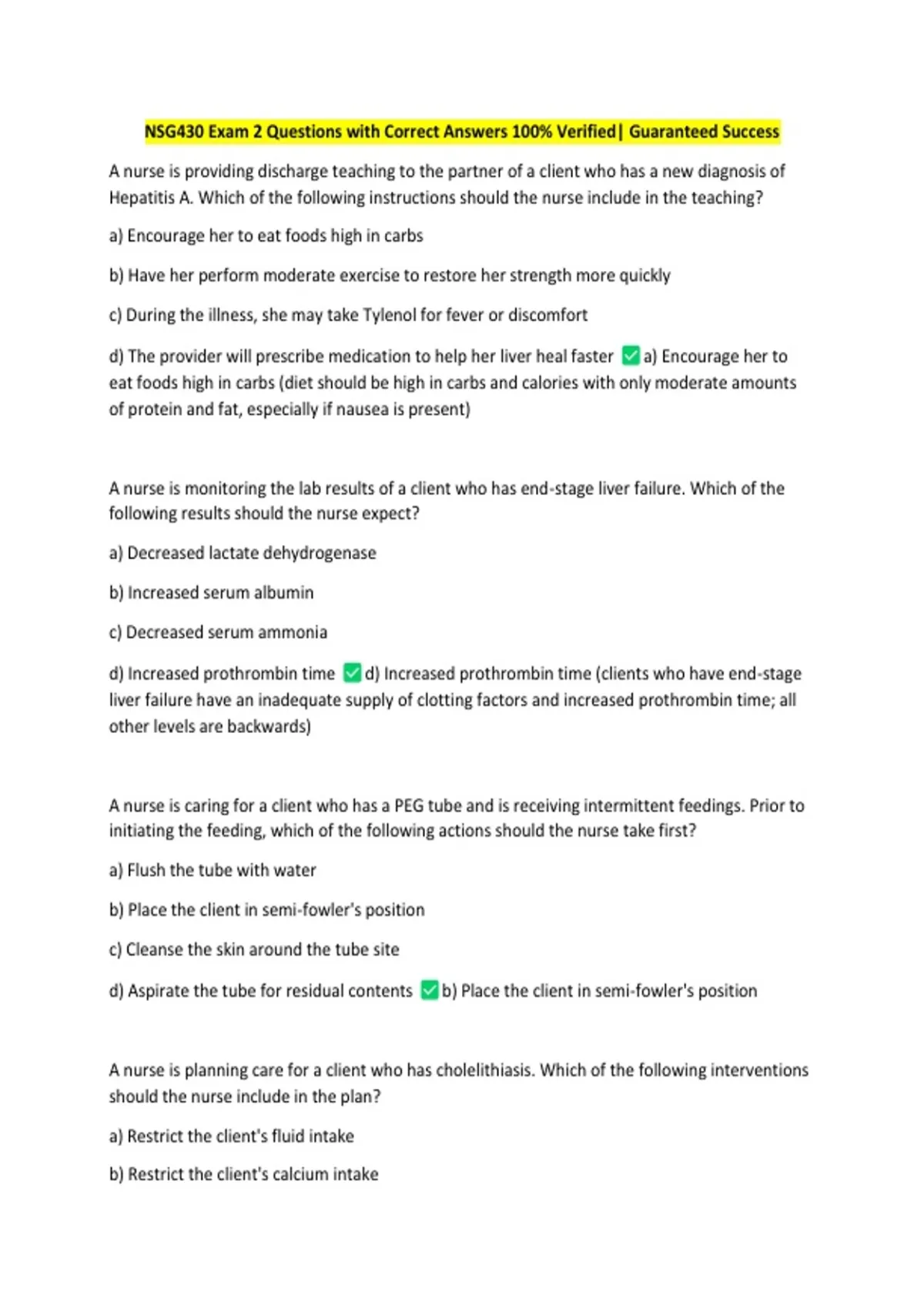 NSG430 Exam 2 Questions with Correct Answers 100% Verified| Guaranteed Success