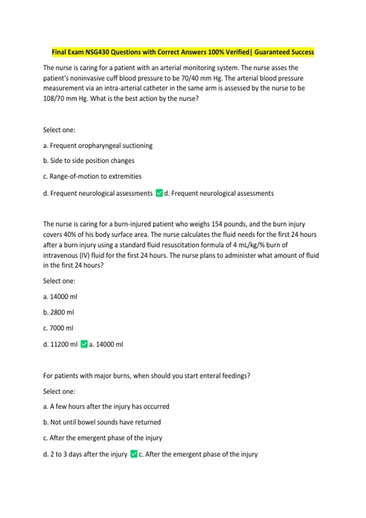 Final Exam NSG430 Questions with Correct Answers 100% Verified| Guaranteed Success