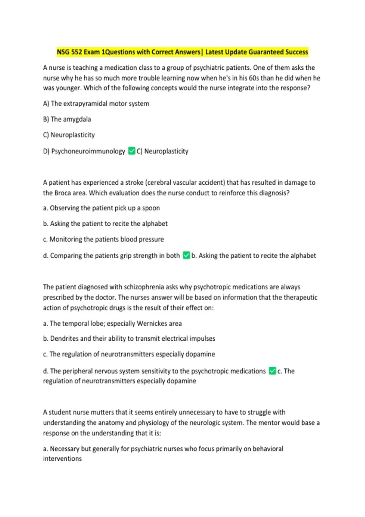 NSG 552 Exam 1Questions with Correct Answers| Latest Update Guaranteed Success