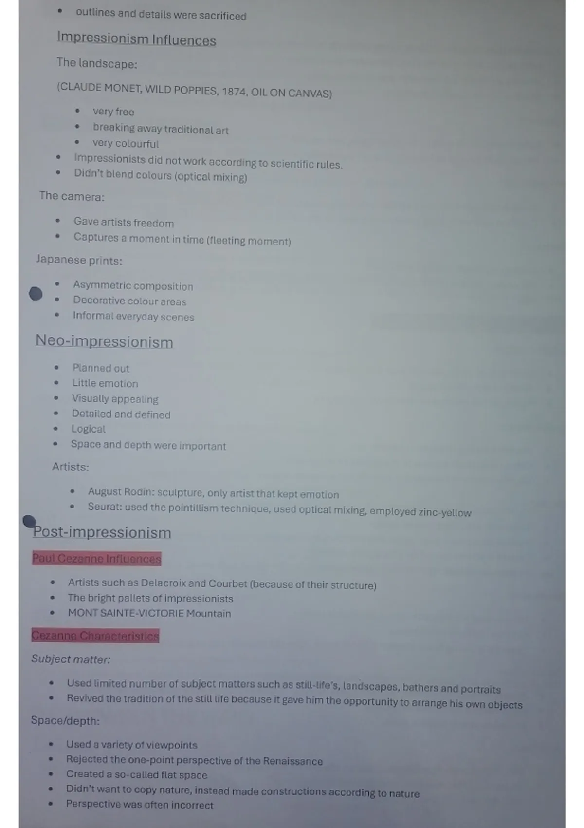 Class notes Visual Arts