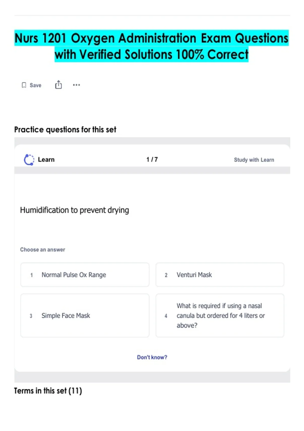 Nurs 1201 Oxygen Administration Exam Questions