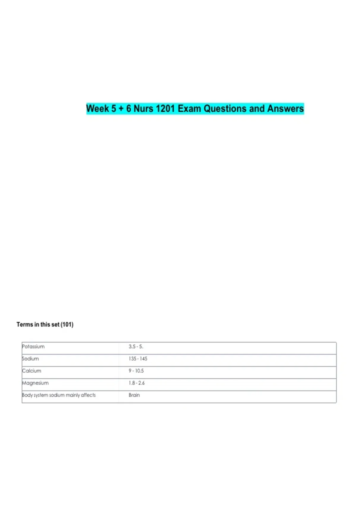 Week 5 + 6 Nurs 1201 Exam Questions and Answers