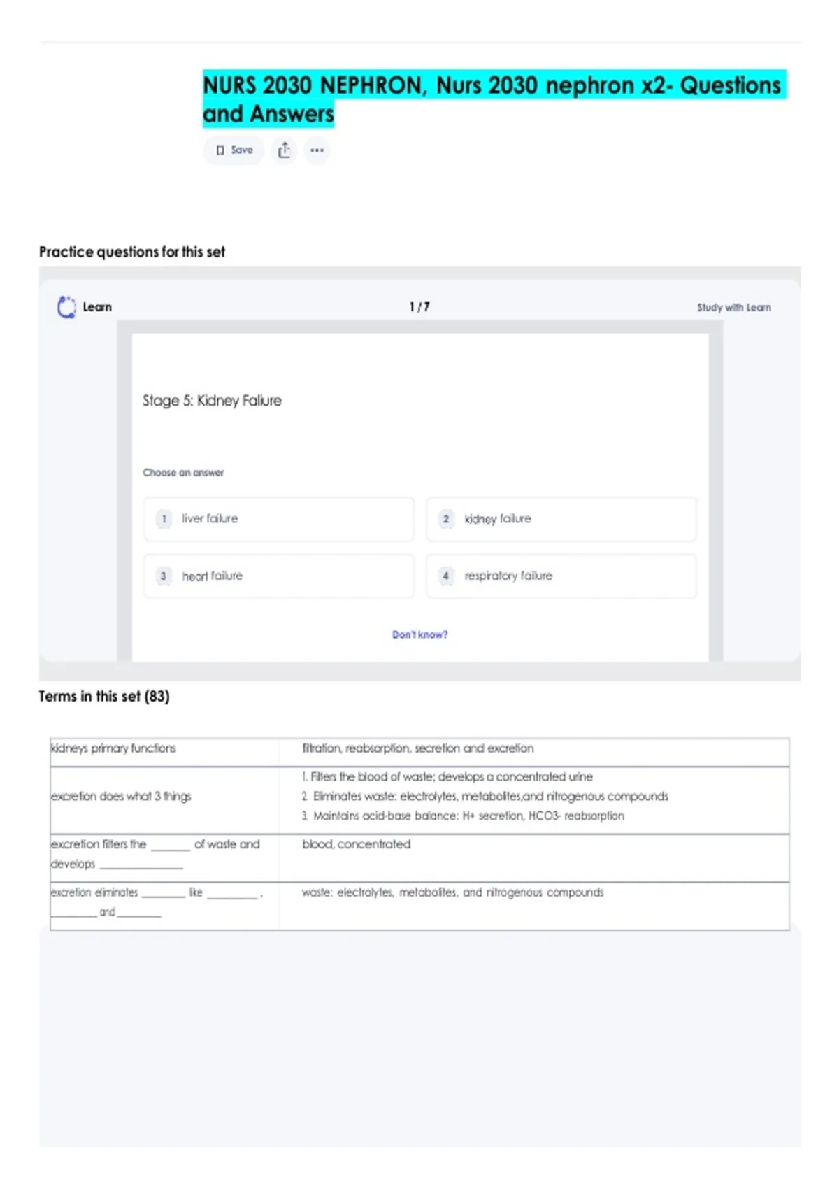 NURS 2030 NEPHRON, Nurs 2030 nephron x2- Questions