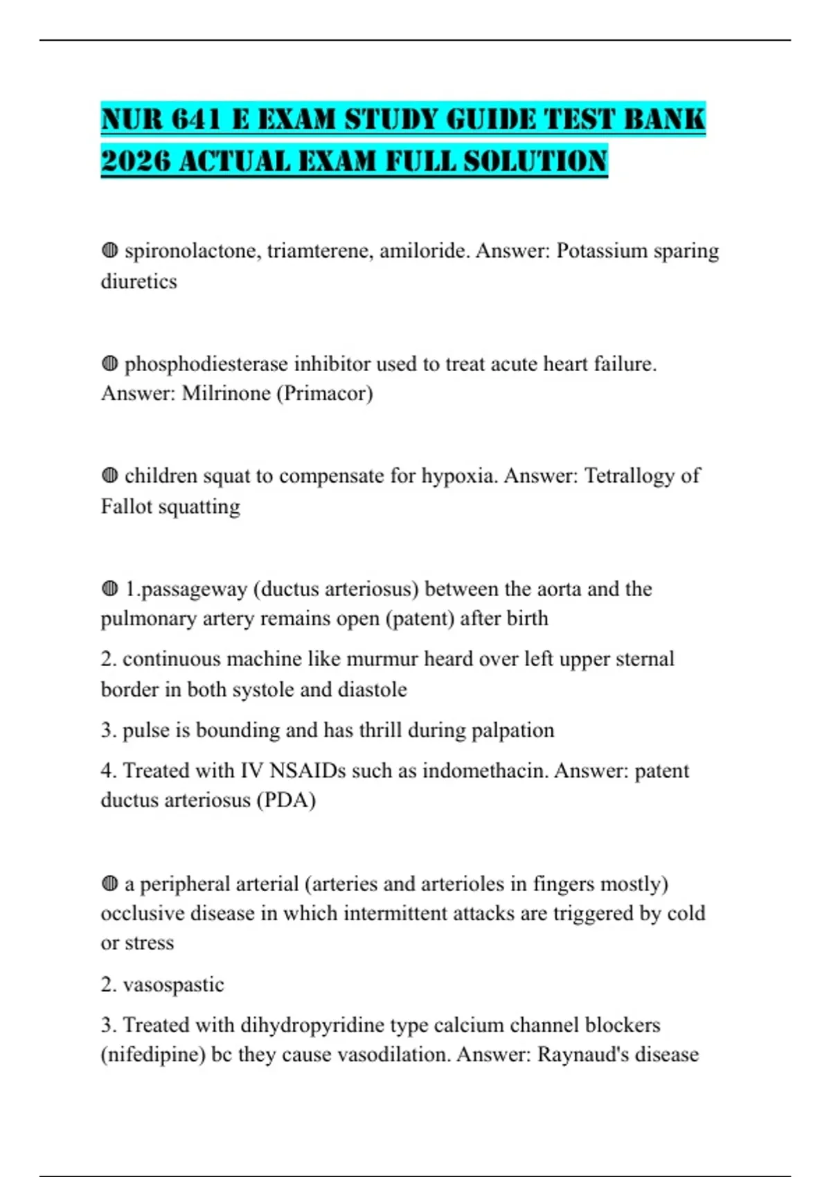 NUR 641 E EXAM STUDY GUIDE TEST BANK