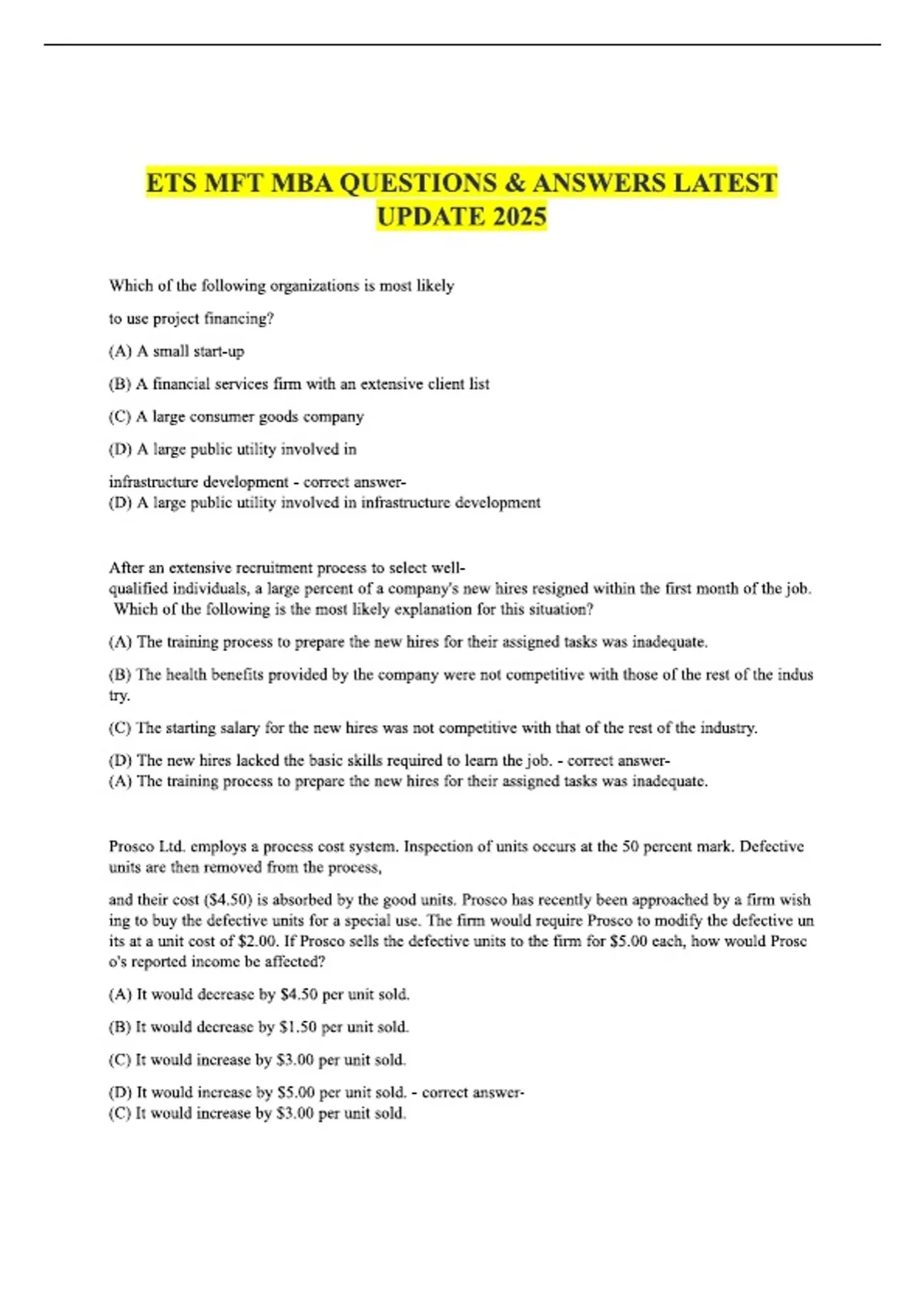 ETS MFT MBA Questions & Answers – 100% Latest Update 2026 | Exam Prep & Study Guide