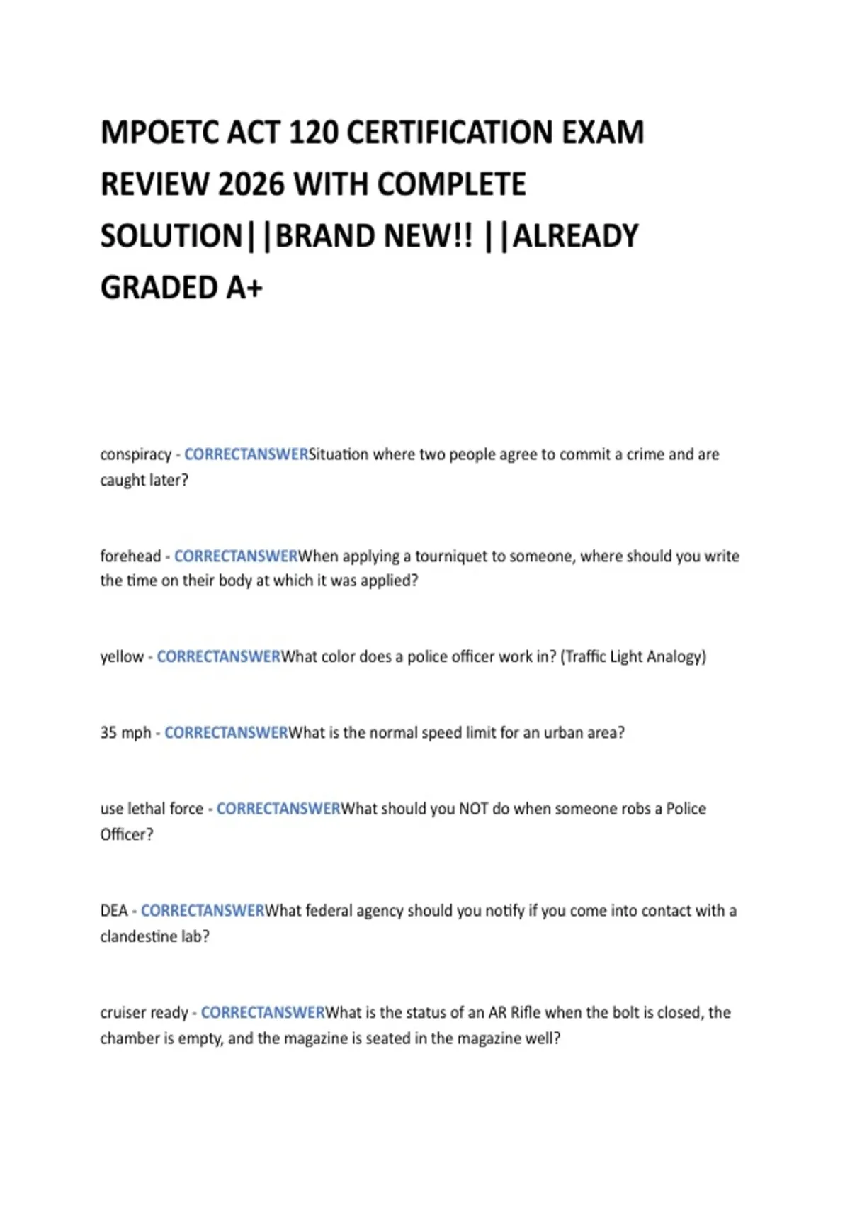 MPOETC ACT 120 CERTIFICATION EXAM REVIEW 2026 WITH COMPLETE SOLUTION||BRAND NEW!! ||ALREADY GRADED A+