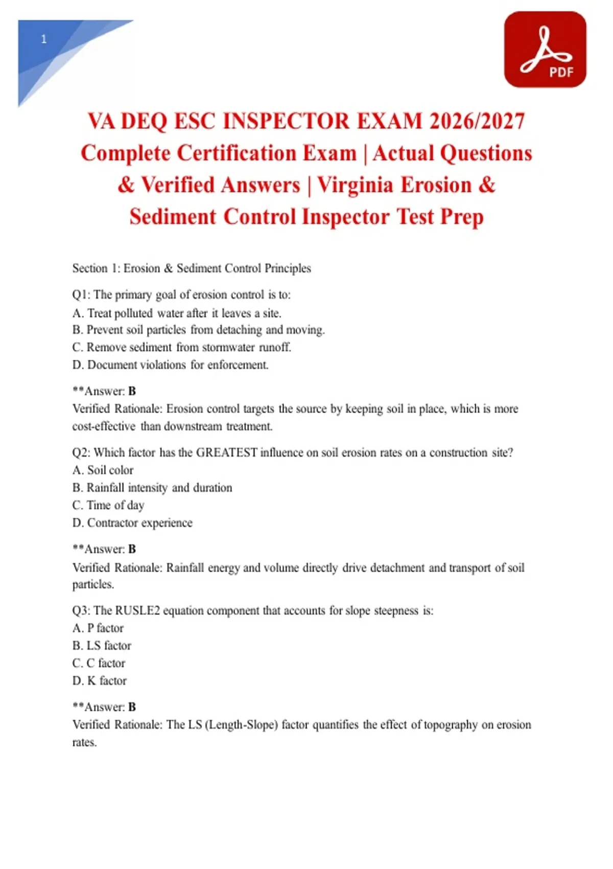 VA DEQ ESC INSPECTOR EXAM 2026/2027