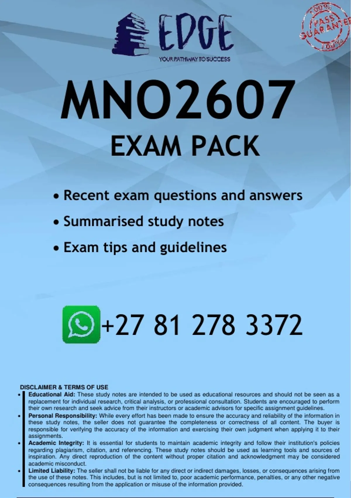 MNO2607 EXAM PACK 2026 - DISTINCTION GUARANTEED