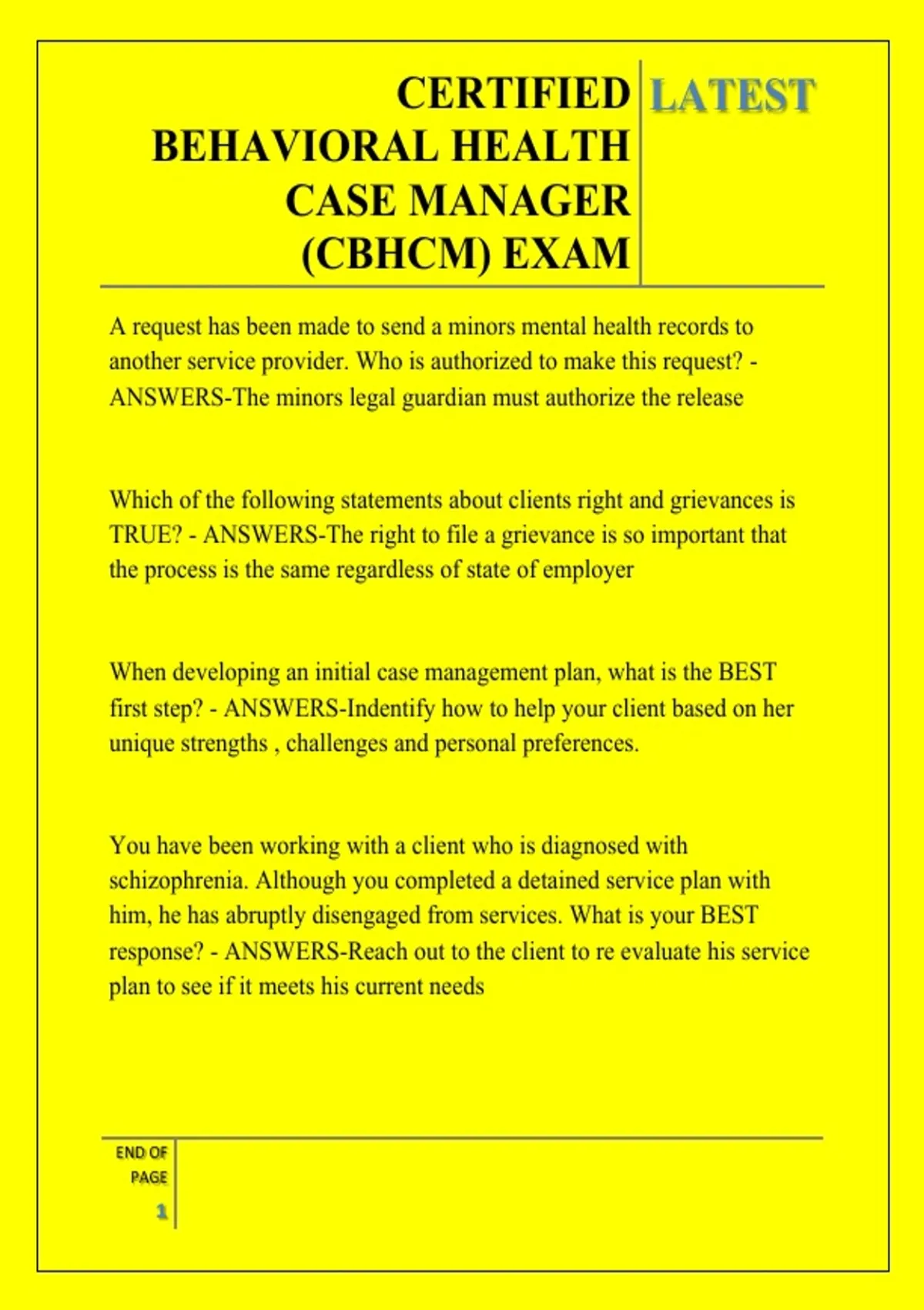 CERTIFIED BEHAVIORAL HEALTH CASE MANAGER (CBHCM) EXAM QUESTIONS AND ANSWERS 2026
