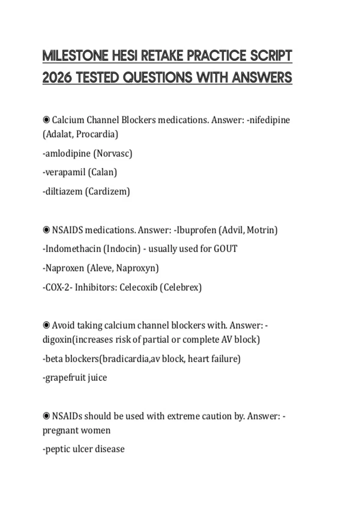 2026 TESTED QUESTIONS WITH ANSWERS