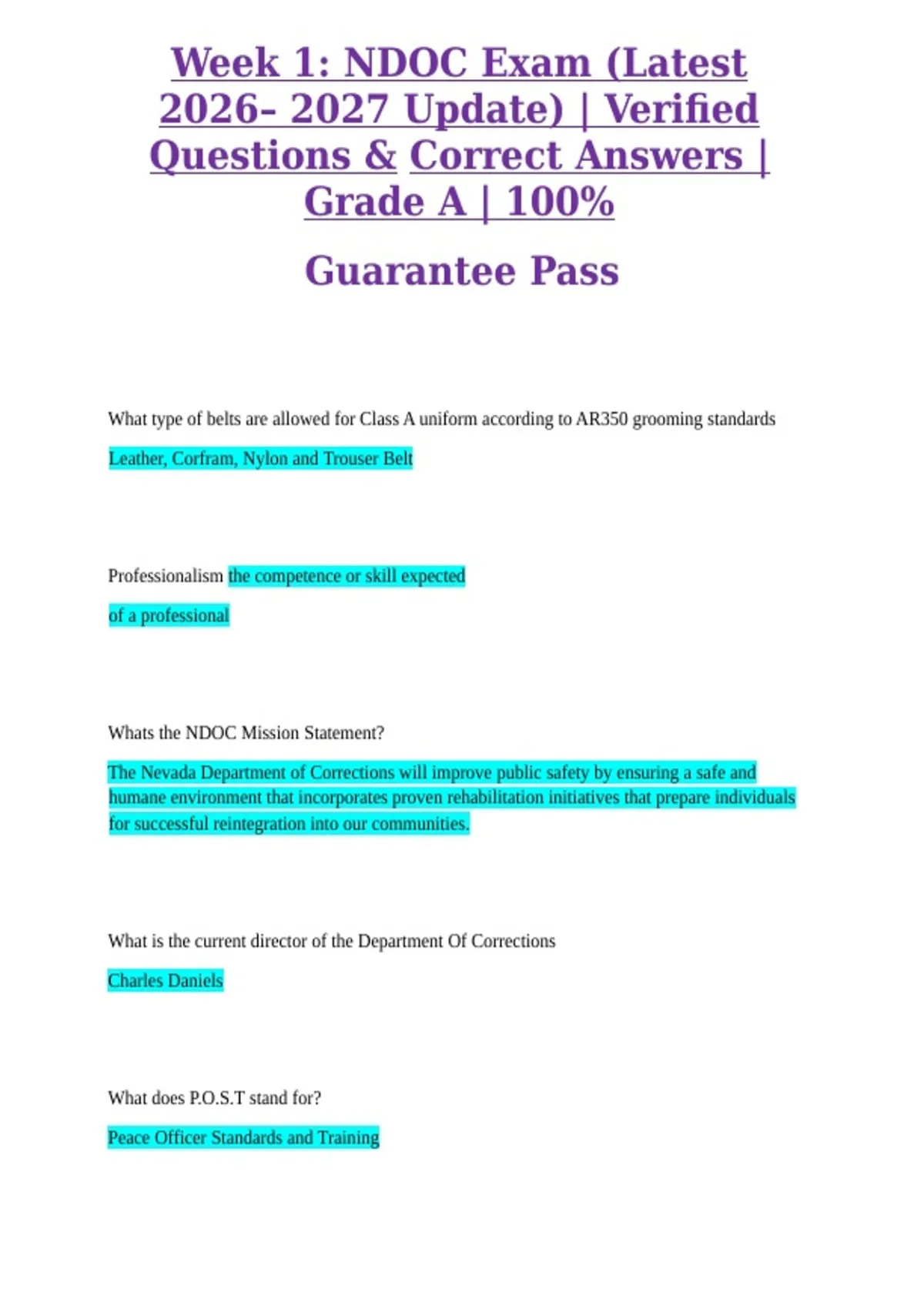 , Week 1: NDOC Exam (Latest
