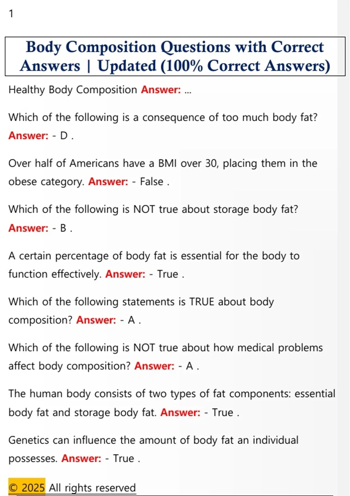 Body Composition Questions with Correct Answers | Updated (100% Correct Answers)