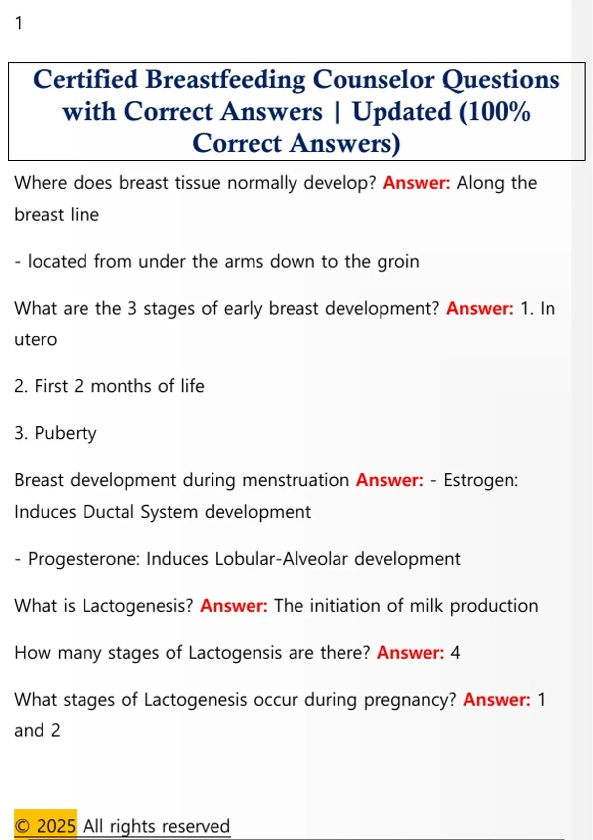 Certified Breastfeeding Counselor CBC Questions with Correct Answers | Updated (100% Correct Answers)