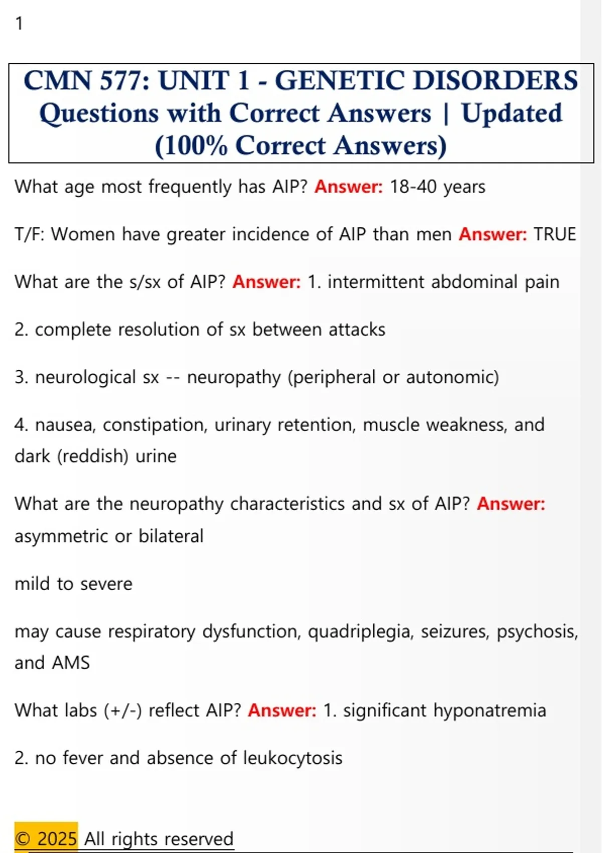 What labs (+/-) reflect AIP? Answer: 1. significant hyponatremia