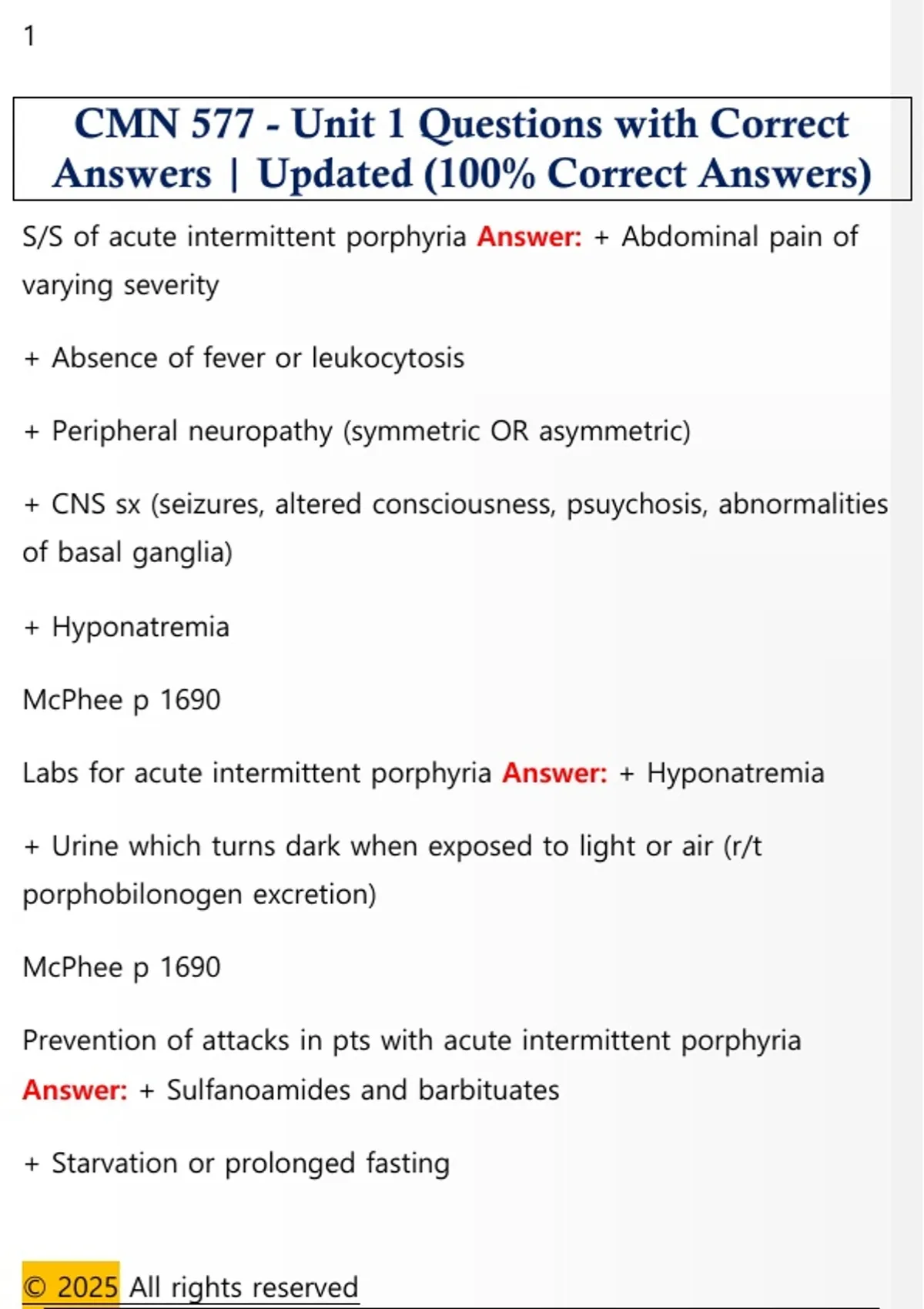 CMN 577 - Unit 1 Questions with Correct