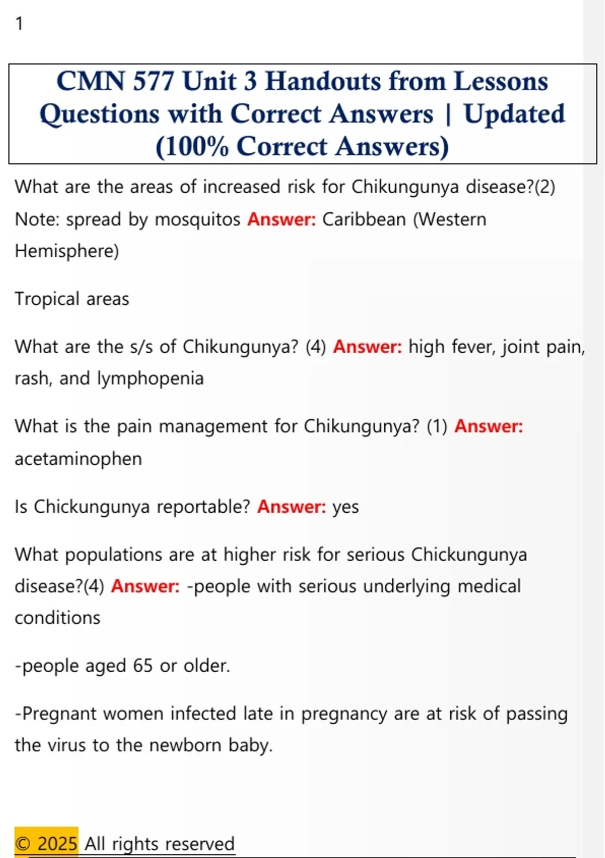 CMN 577 Unit 3 Questions with Correct Answers | Updated (100% Correct Answers)