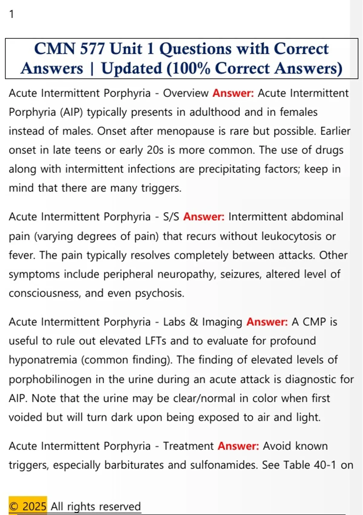 Acute Intermittent Porphyria - Overview Answer: Acute Intermittent