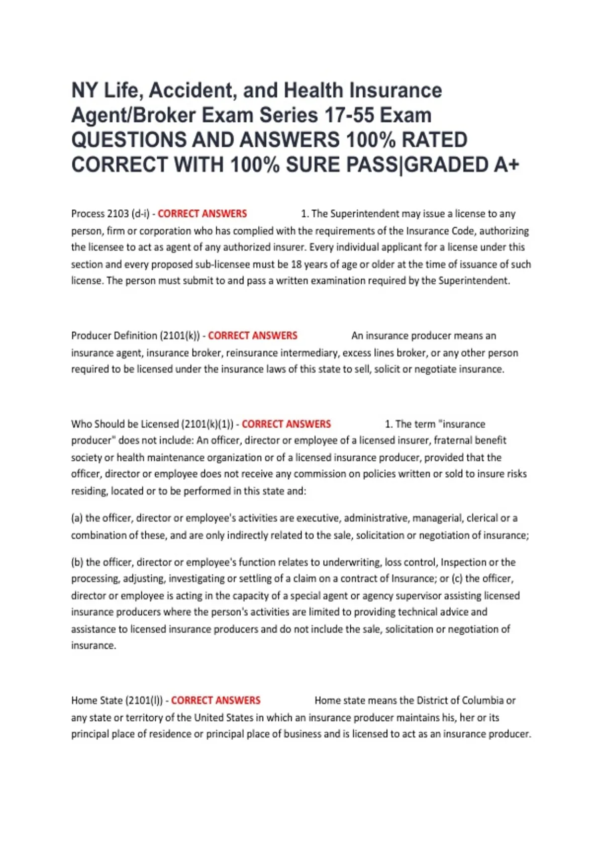 Agent 2101(k) - CORRECT ANSWERS insurance producer means an insurance agent,
