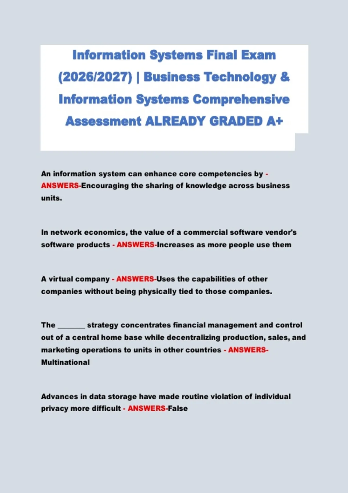Information Systems Final Exam (2026/2027) | Business Technology & Information Systems Comprehensive Assessment ALREADY GRADED A+