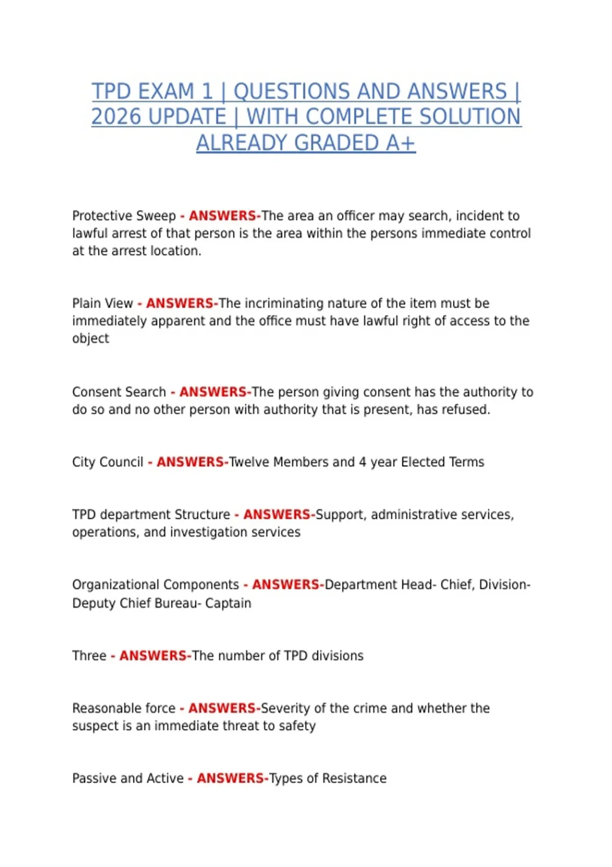TPD EXAM 1 | QUESTIONS AND ANSWERS |