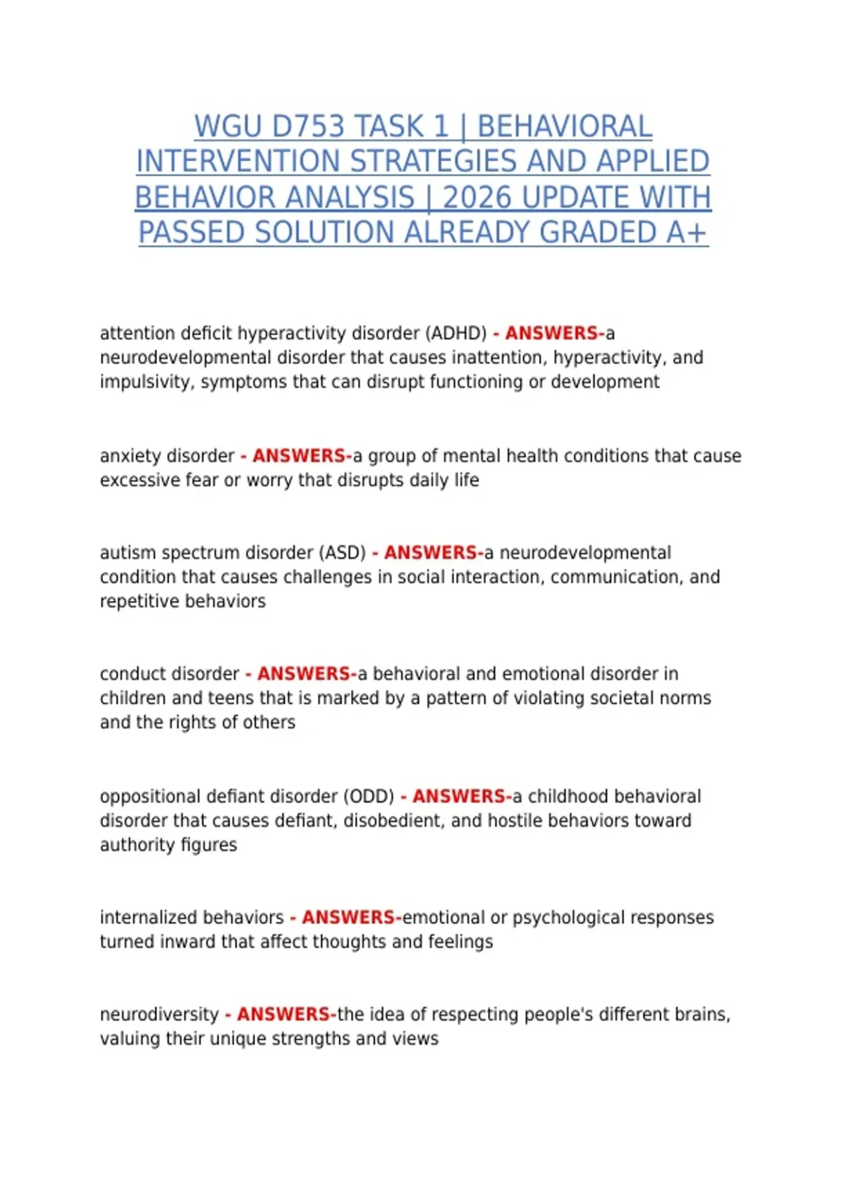 WGU D753 Task 1 – Behavioral Intervention Strategies & Applied Behavior Analysis (2026 Update) | Passed Solution | A+