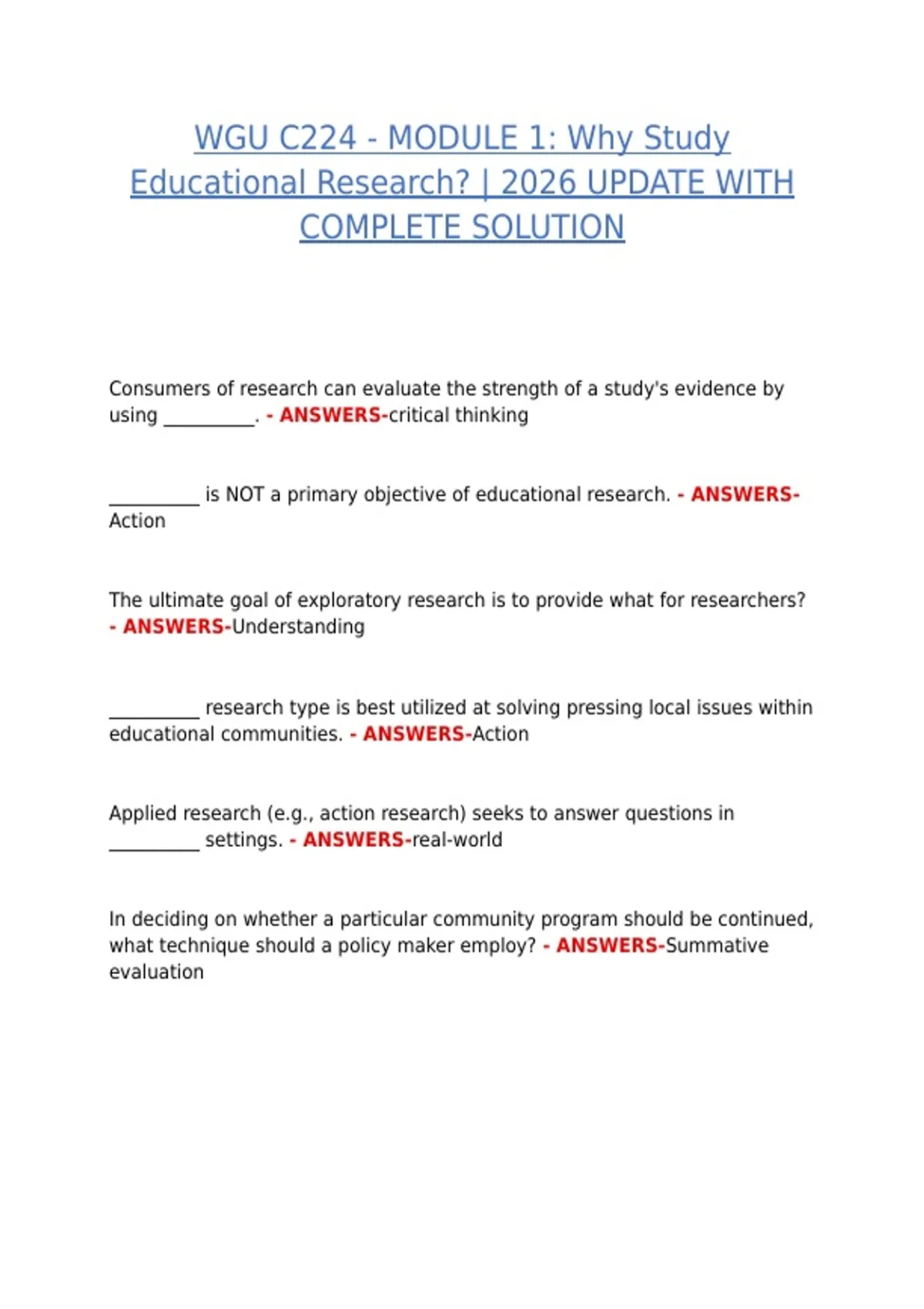 WGU C224 - MODULE 1: Why Study Educational Research? | 2026 UPDATE WITH COMPLETE SOLUTION