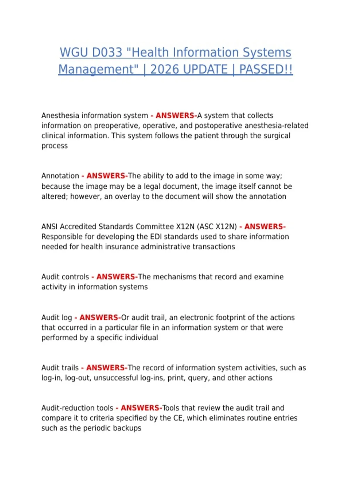 ANSI Accredited Standards Committee X12N (ASC X12N) - ANSWERS-