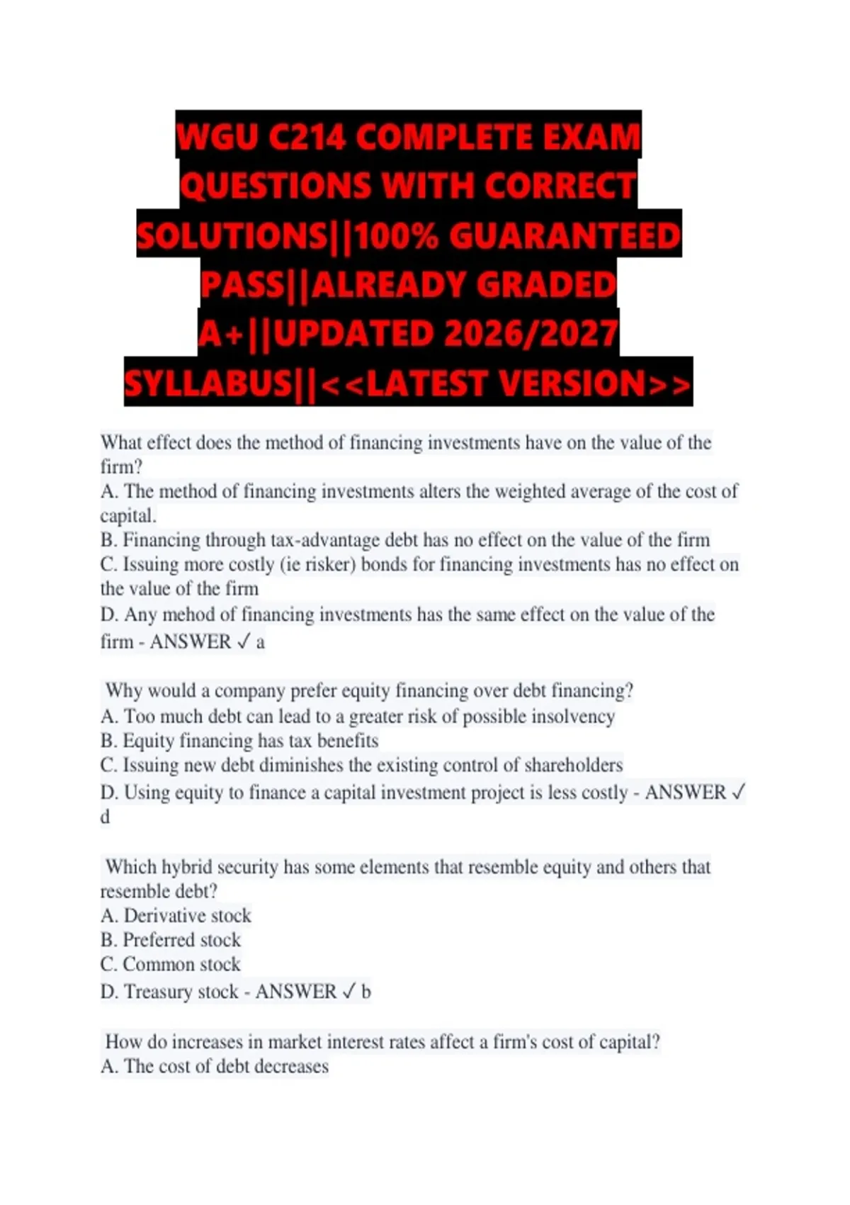 D. The cost of equity increases - ANSWER ✓ c
