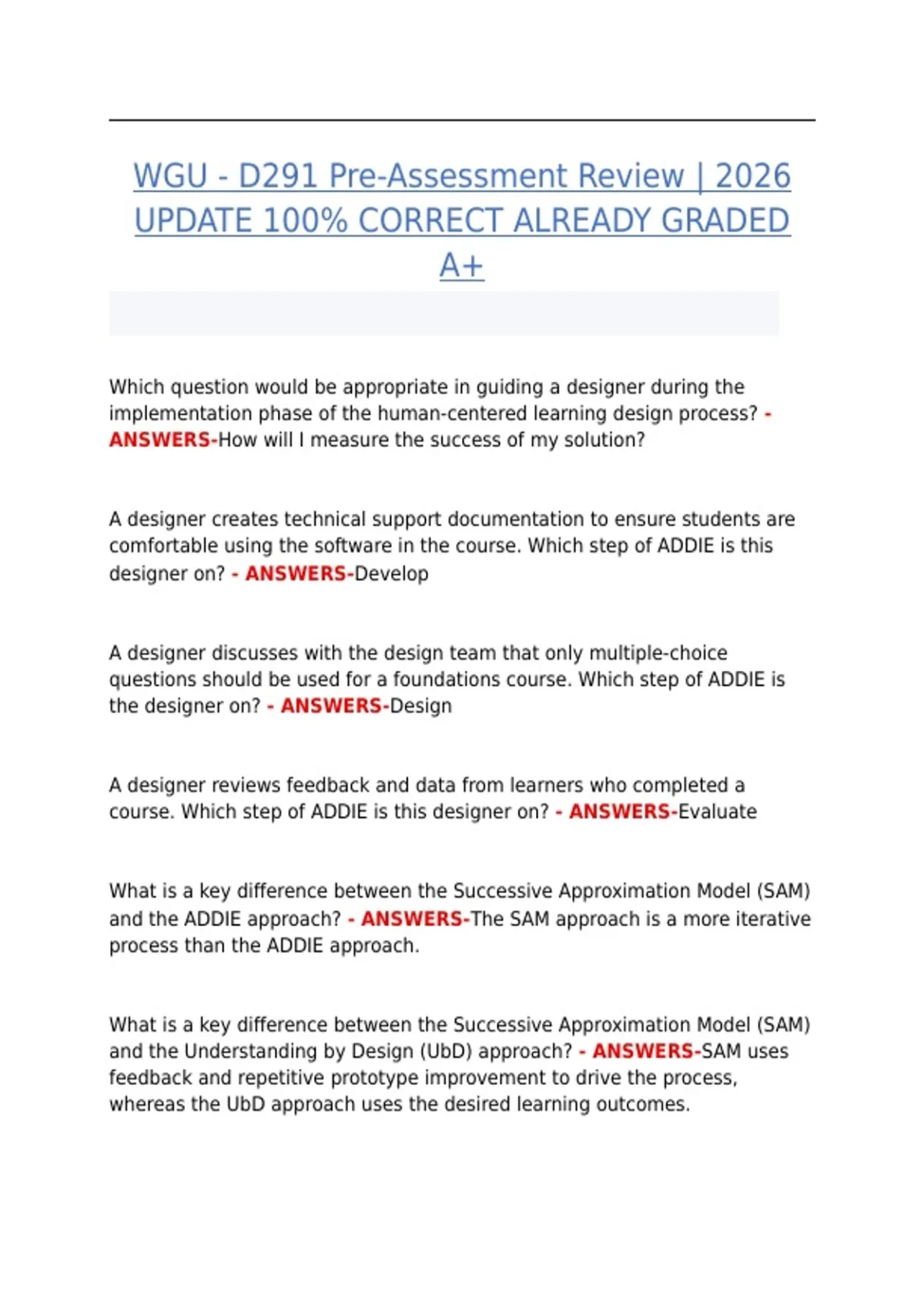 WGU D291 Pre-Assessment Review (2026 Update) | 100% Correct | Graded A+