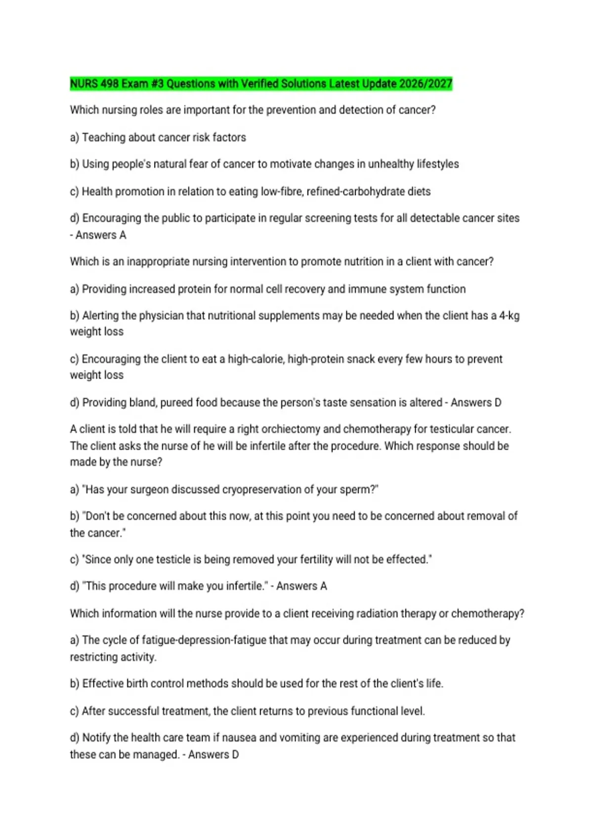 - Answers A