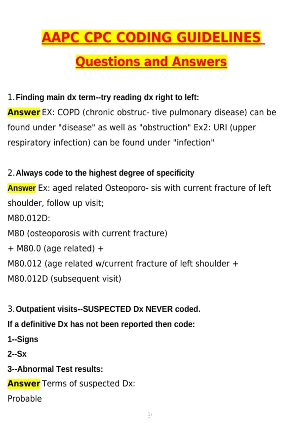 2.Always code to the highest degree of specificity
