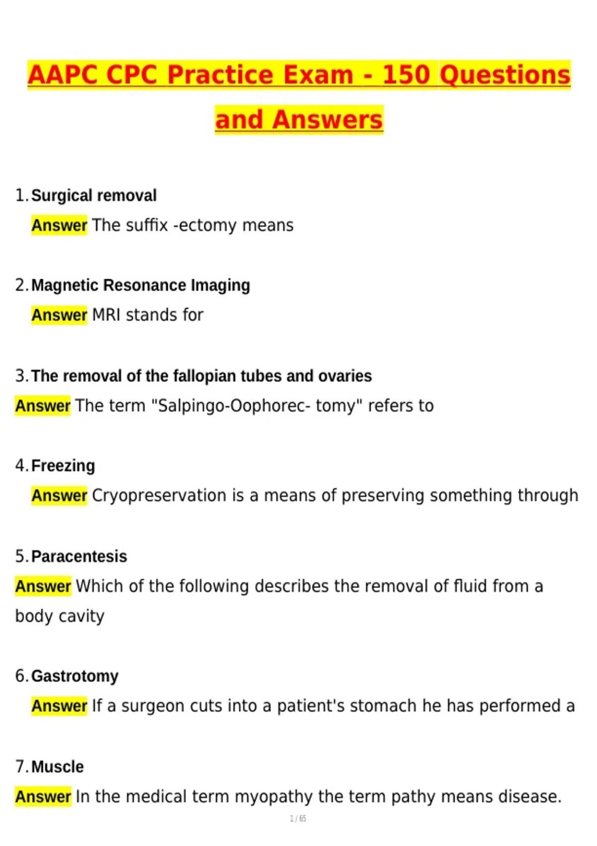 AAPC CPC Practice Exam - 150 Questions (Latest 2026 / 2027 Update) Questions and Verified Answers | 100% Correct | Grade A+