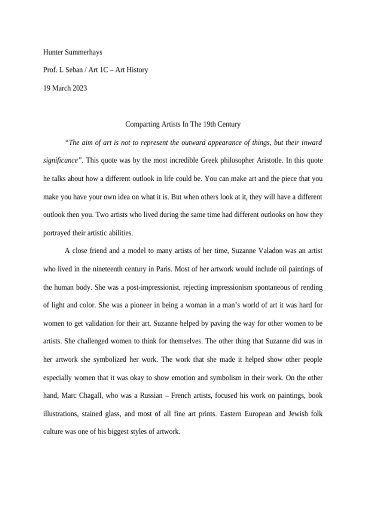 Prof. L Seban / Art 1C – Art History