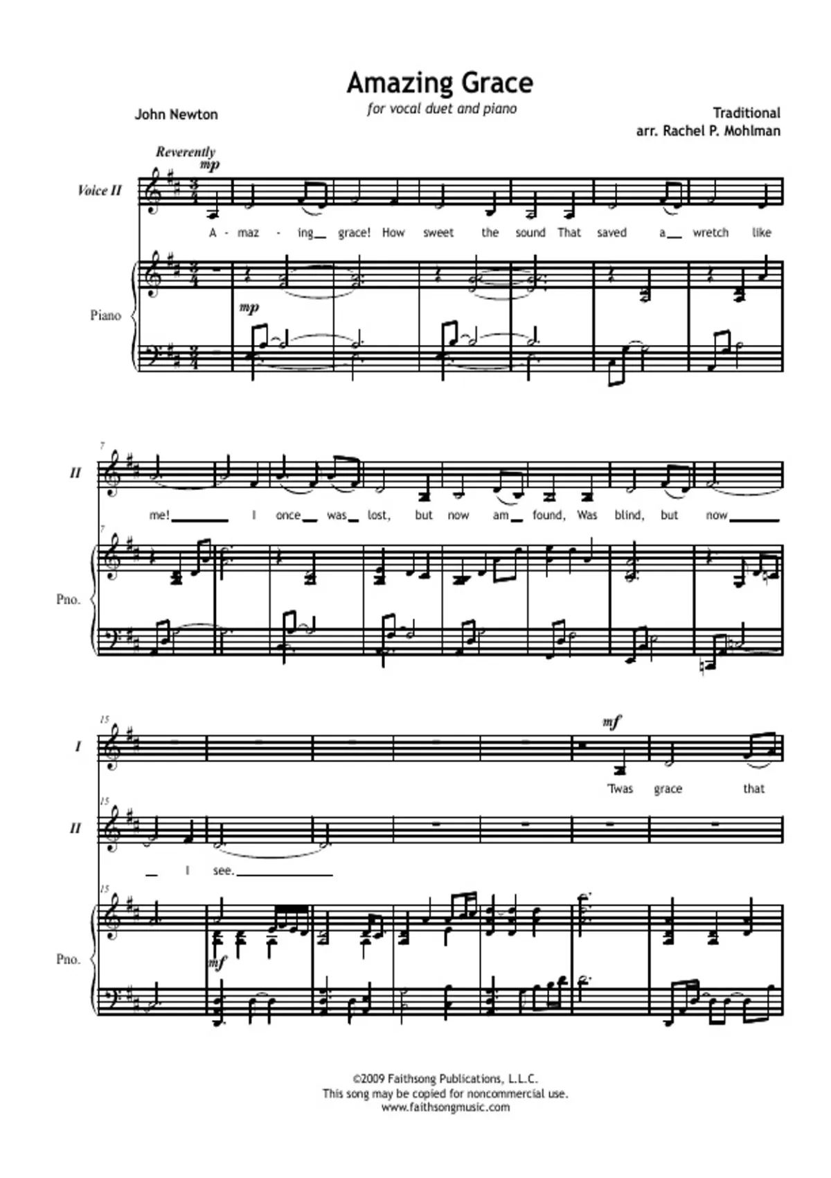 John Newton for vocal duet and piano Traditional